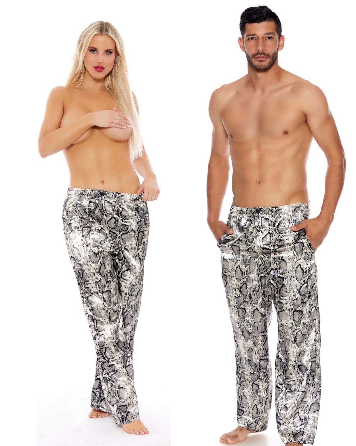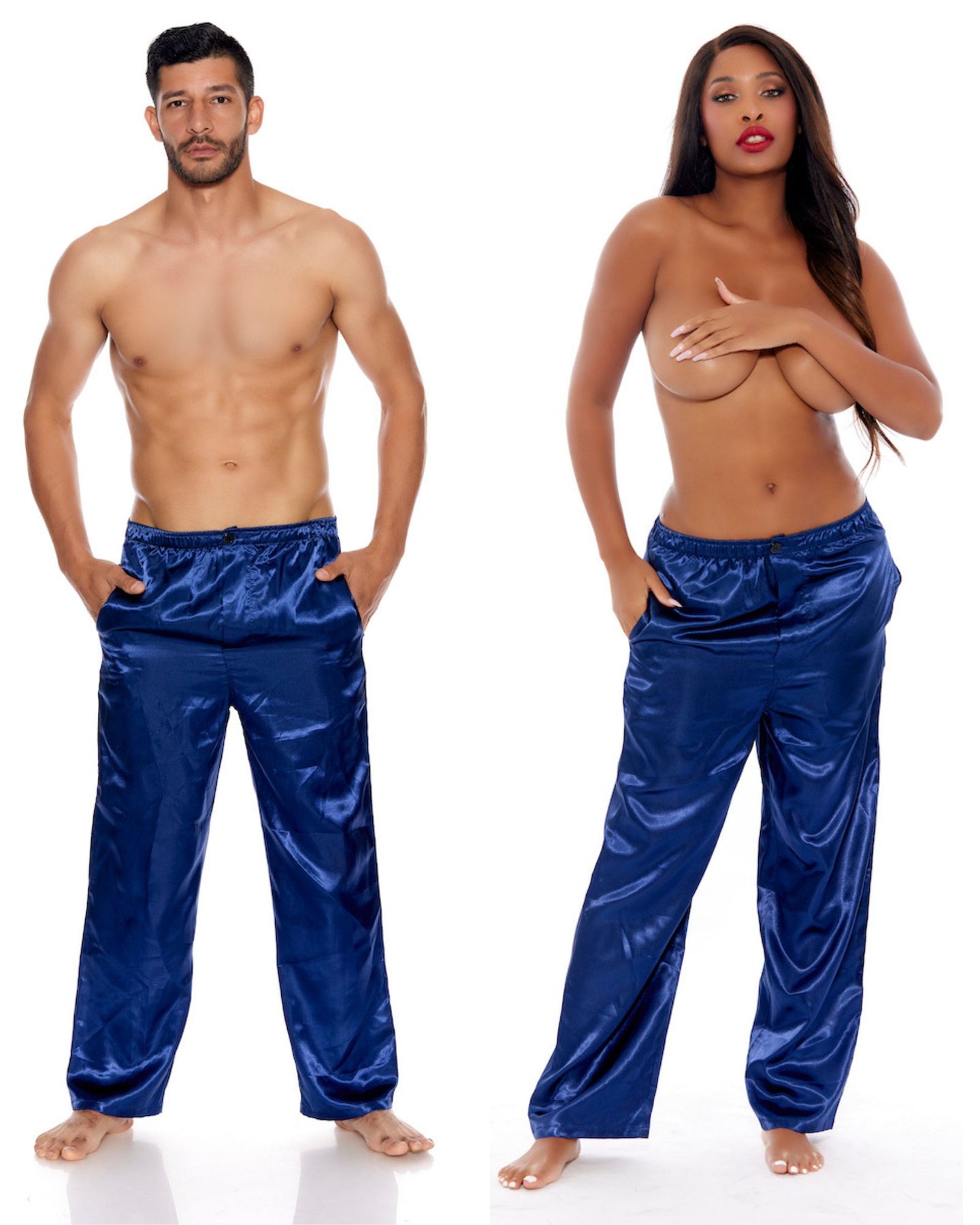 Unwind in style with your significant other in our Unisex Satin Long Pants. Designed for both comfort and relaxation, these pants feature an elastic waist, side pockets, and a convenient button closure. Choose from an array of colors and prints to suit your preferences, creating the perfect matching and cozy ensemble for a relaxed time together.